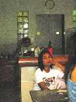n'arrête pas de la mater, à tel point qu'elle se fâche un peu, fait des grimaces, puis bientôt demande :