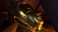 Je pars déjeuner dans un resto du coin, sur mon tél Aom me harcèle pour me revoir, je ne réponds pas, c’est avec Wan que j’ai envie de passer du temps maintenant. D'ailleurs, cette dernière arrive. Et on file à Wat Pho. Dans le taxi je remarque que, dans toute la ville, on peut voir des photos immenses de la reine. Et même des décorations, genre déco de Noël dans certains quartiers. Wan éclaire ma lanterne en me disant que c'était bientôt son anniversaire. Du coup je lui pose plein de questions sur le couple royal… A force d’insister et de poser des questions bizarres, elle me fait chut . Mais pas le chut voulant dire ferme ta gueule, le chut , fais attention, le chauffeur nous écoute. Je vois que le sujet est sensible, j'évite alors de trop en parler. Du coup on parle d’autre chose et vu qu’on est cerné de tuk-tuk dans tous les sens non loin de Wat Pho, je lui dis que jamais je ne monterai dans ces engins de mort, elle rigole et dit que elle aussi !