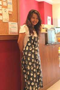 Elle est toute mignonne, elle a mis une robe, mais avec un t-shirt en dessous qui gâche un peu tout, mais si elle ne l’avait pas mis ça ferait un peu vulgaire….