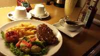Plus tard à l'hôtel commençant à avoir la dalle je commande au room service un bon steak frites :