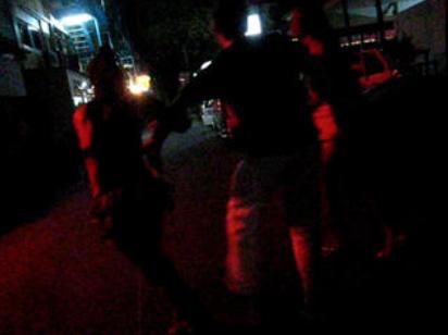 Ne trouvant pas le Blue Room, nous allons déjeuner dans le buffet luxueux faisant l'angle entre Soi 6/1 et Beach Road, puis décidons de chercher le fameux bar du coté de Soi 6/1 ou nous vivrons une petite frayeur. La rue Soi 6/1 est presque désertique, si ce n'est la présence isolée d'un bar à katoeys qui semble aussi donner sur Soi 6. Pour commencer une yin surgit du "Mandarin Beer Bar", me saute dessus et m'attrape les testicules. Je le prends à la rigolade mais finis tout de même accroupi par terre. Elle se retire mais plus loin, près d'un angle avec une rue intermédiaire, trois katoeys sortent d'un bar et me sautent dessus et me tirent vers leur bar. Je suis réellement dans l'impossibilité de lutter pour m'en défaire. J'ai un peu peur mais je garde le sourire afin de ne pas les provoquer. Mon pote film la scène, il est mort de rire. A un moment, ma montre se casse et tombe tellement l'un me tire fort sur le poignet. Il ramasse la montre et me la rend un peu gêné. Je réponds qu'il n'y a pas de problème et en profite pour m'éloigner. Comme ils se mettent à nous rattraper, nous partons en courant, morts de rire.