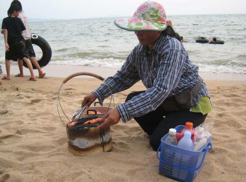 Nam me propose le fameux " I stay with you ? " que j'accepte volontiers ; c'est ma première journée avec une yin. Nous passons l'après midi à la plage de Jomtien avec elle et mon pote. J'en profiterai pour nager un peu malgré la pollution apparente de l'eau qui a au moins le mérite d'être très chaude.