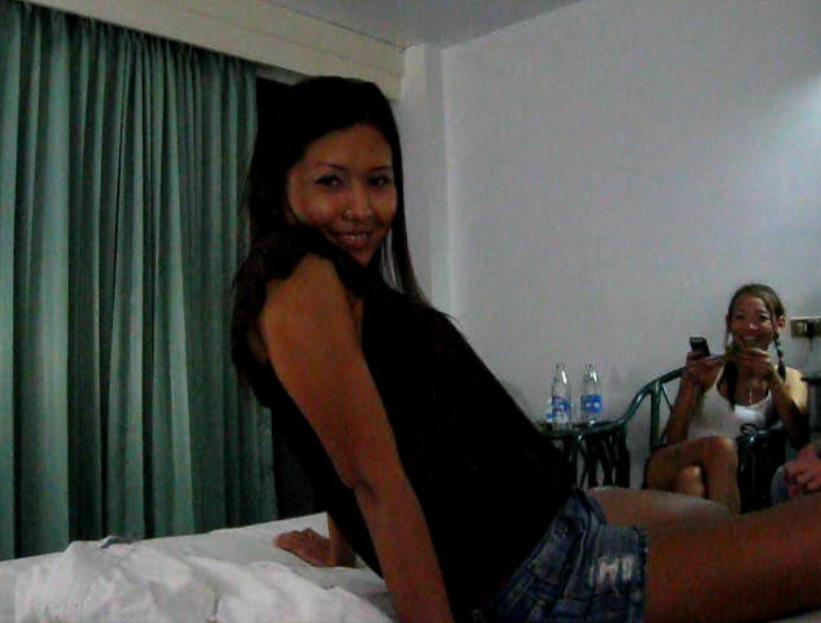 La nouvelle Nam me chauffe à coup de bassin sur la piste de danse. Un de nos amis suisse n'ose pas aborder une fille qui lui plaît. Nam s'en charge donc pour lui et tout se passe bien. Nous rentrons tous les quatre ensemble à l'hôtel, laissons le reste de nos compagnons à leur quête du Graal. Je passe rapidement prendre du Kamagra à la pharmacie, car je veux être sur de ma puissance afin de profiter pleinement de cette fille qui semble vouloir se donner au plus profond d'elle-même. L'ami suisse a peur de croiser la fille de la veille à la porte de sa chambre car cette dernière le poursuit des ses assiduités. Il préfère donc aller vérifier seul sa chambre et me demande de prendre temporairement sa yin chez moi. Ensuite il repassera pour la récupérer. Nous discutons un peu à quatre, ce qui me permet de sortir la caméra pour faire quelques films.